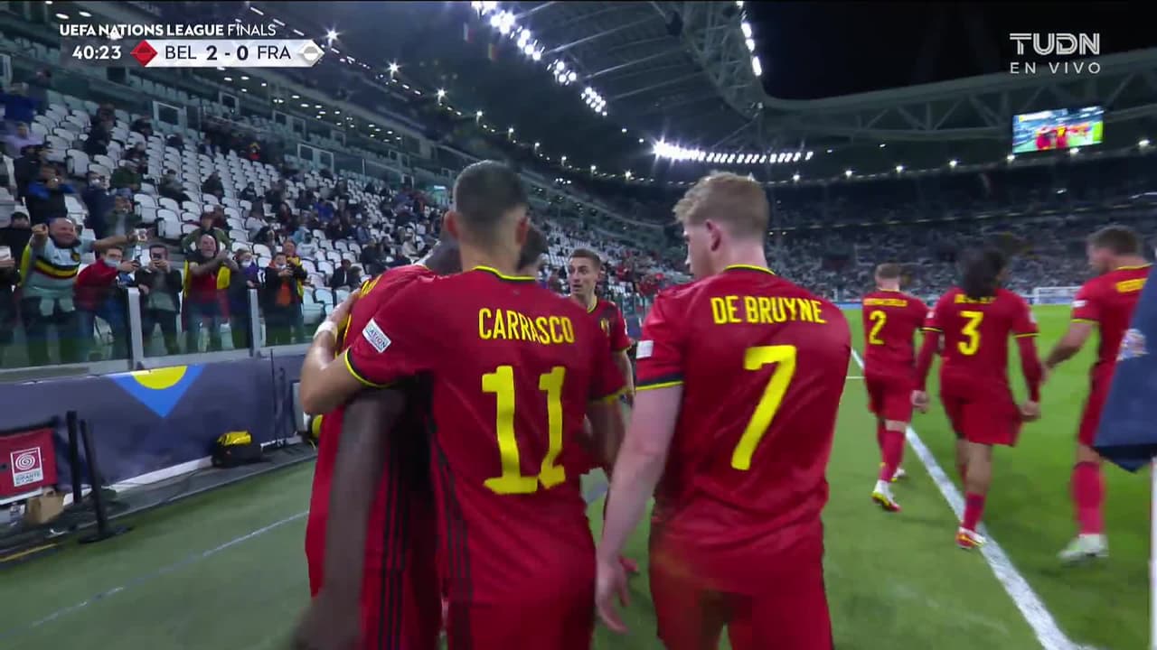 ¡Gol! Bélgica 2| Francia 0. Romelu Lukaku (Bélgica) Disparo con la derecha sin ángulo desde la derecha por arriba. Asistencia de Kevin De Bruyne.
