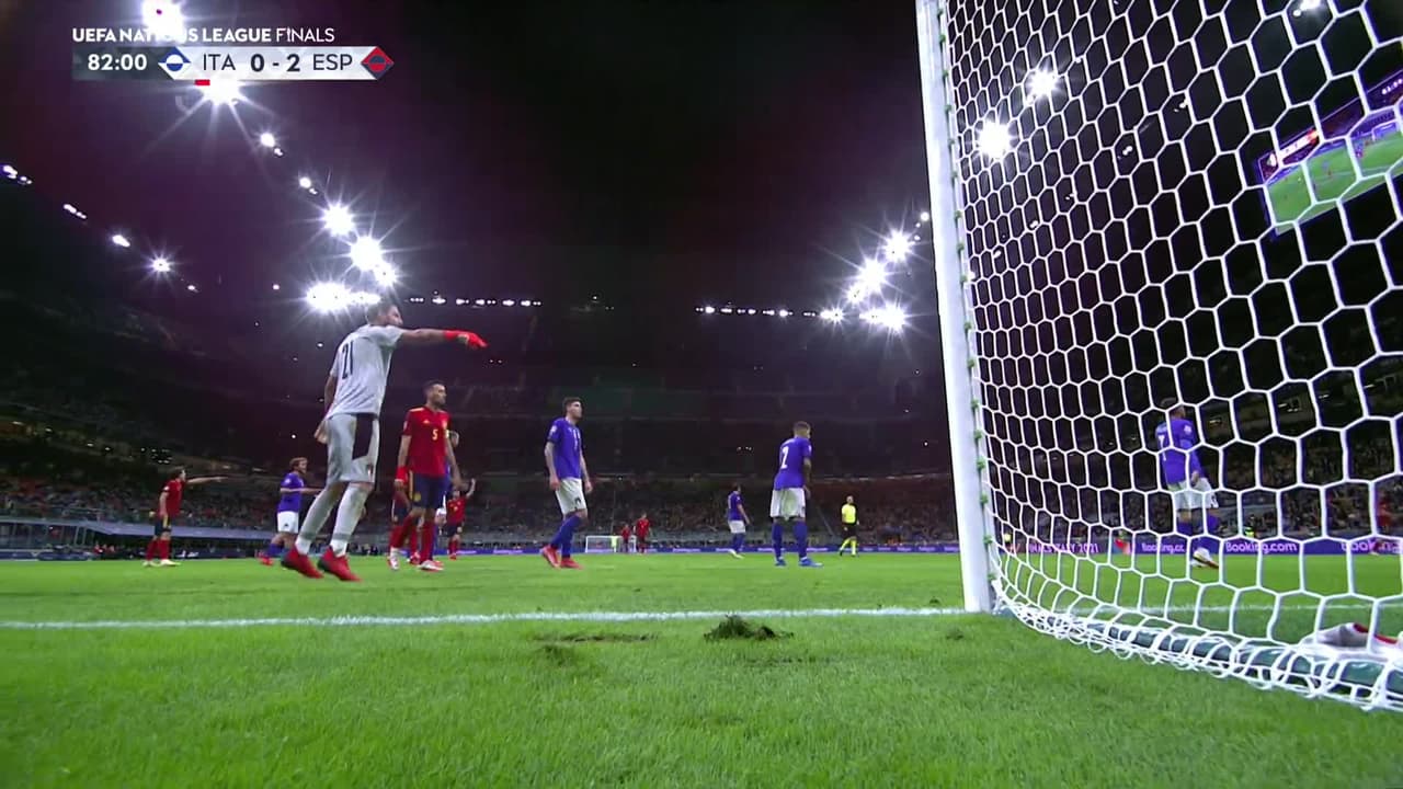¡Gol! Italia 1| España 2. Lorenzo Pellegrini (Italia) Disparo con la derecha desde muy cerca.