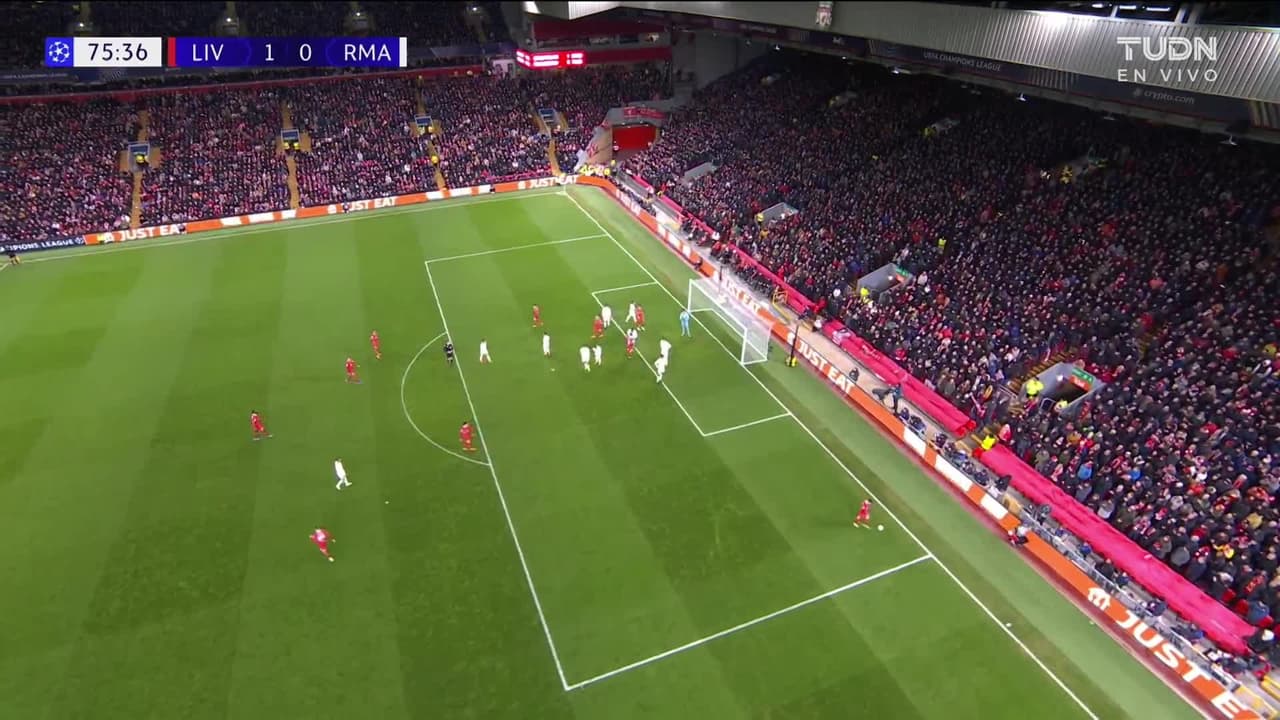 ¡Gol! Liverpool 2| Real Madrid 0. Cody Gakpo (Liverpool) disparo de cabeza desde muy cerca tras un saque de esquina.