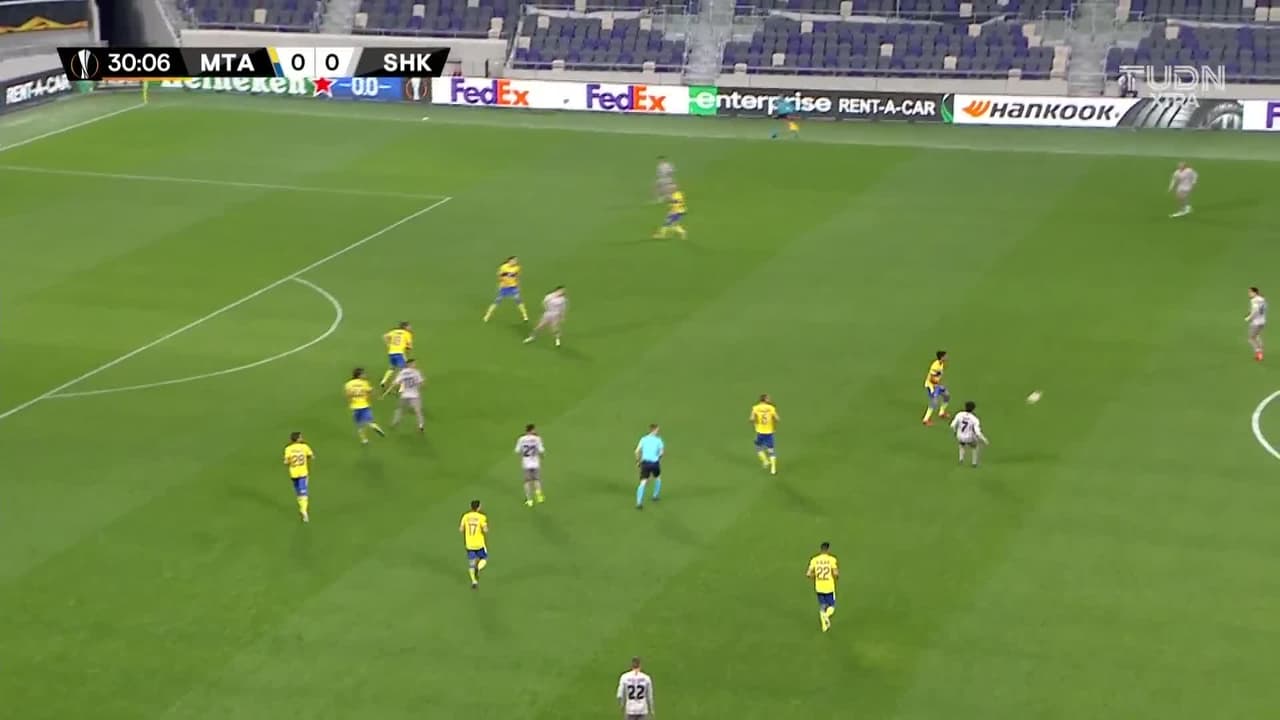 ¡Gol! Maccabi Tel Aviv 0| Shakhtar Donetsk 1. Alan Patrick (Shakhtar Donetsk) Disparo con la derecha desde el centro del área.