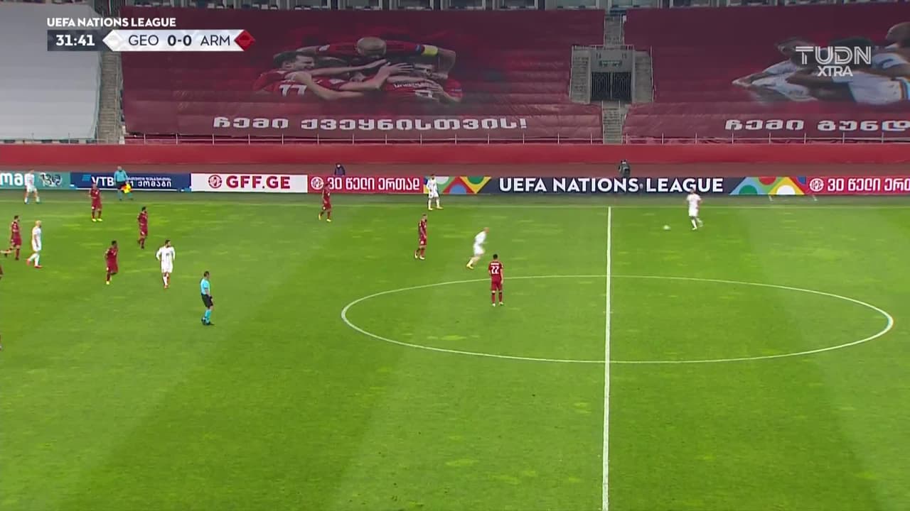 ¡Gol! Georgia 0| Armenia 1. Gevorg Ghazaryan (Armenia) Disparo con la derecha desde el centro del área.