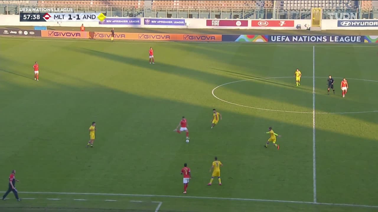 ¡Gol! Malta 2| Andorra 1. Jurgen Degabriele (Malta) disparo de cabeza desde el centro del área.