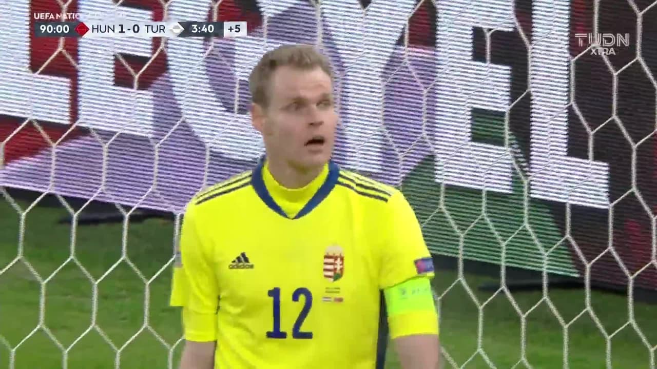 ¡Gol! Hungría 2| Turquía 0. Kevin Varga (Hungría) Disparo con la derecha desde fuera del área tras un contragolpe.