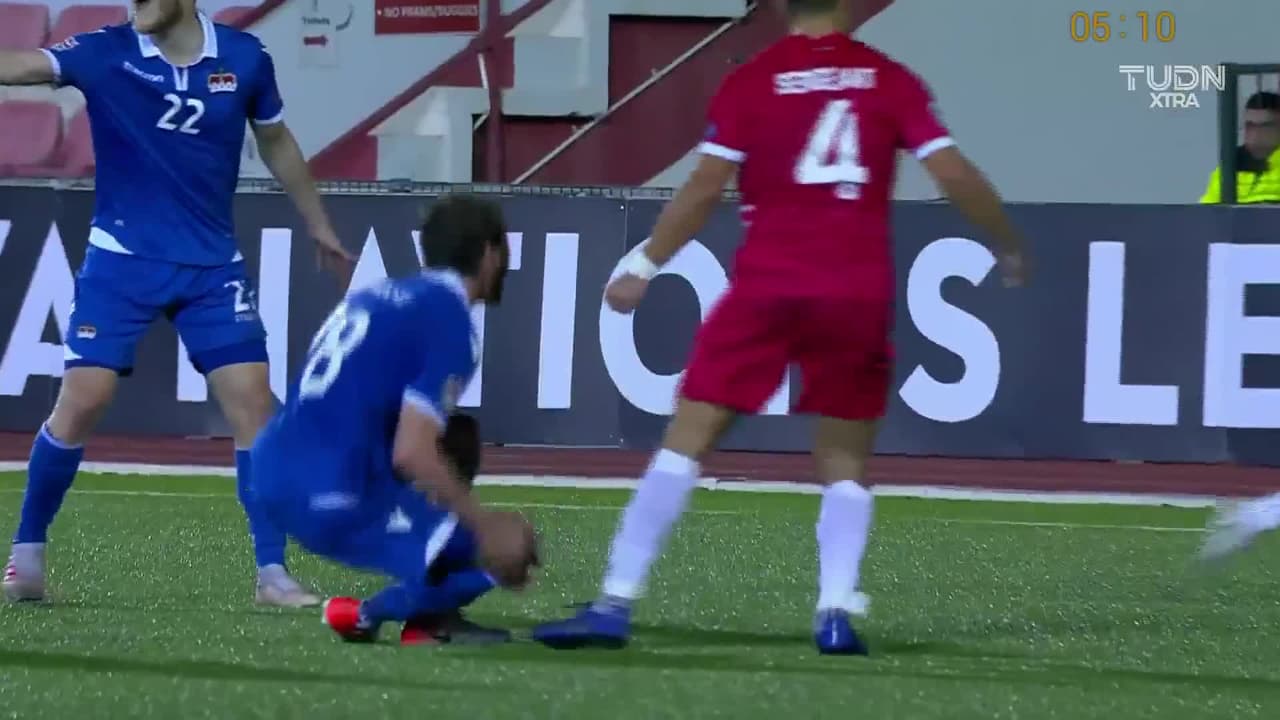 ¡GOOOL! Noah Frick anota para Liechtenstein.