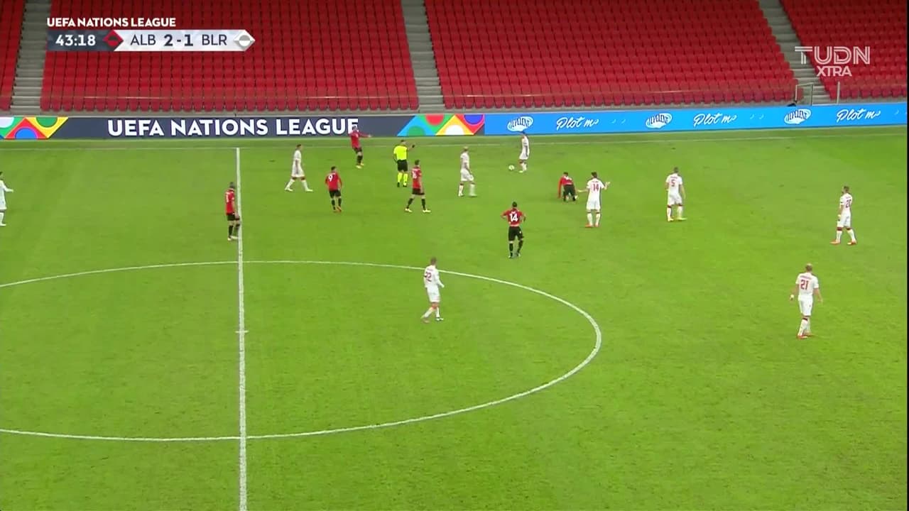 ¡Gol! Albania 3| Bielorrusia 1. Rey Manaj (Albania) Disparo con la derecha sin ángulo desde la derecha.