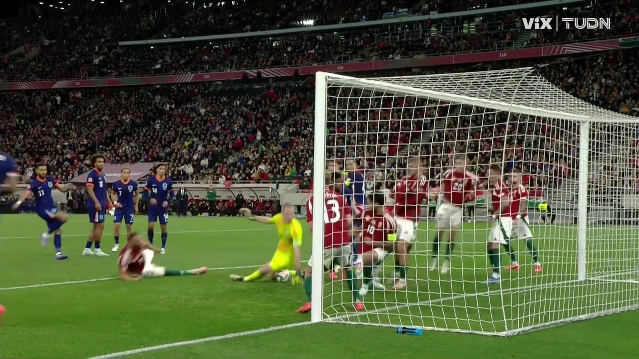 Países Bajos no supo aprovechar el tiro libre indirecto después de un mal saque del arquero húngaro.