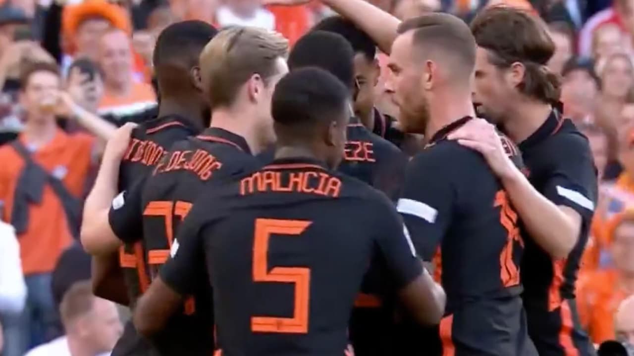 Vincent Janssen, aún delantero de Rayados, puso la asistencia para el primer gol de Holanda.
