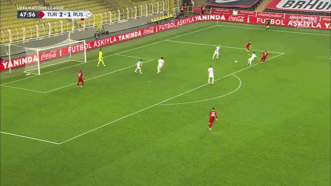 Tiro atajado raso al centro del arco. Cenk Tosun (Turquía) Disparo con la derecha desde fuera del área. Asistencia de Hakan Calhanoglu.
