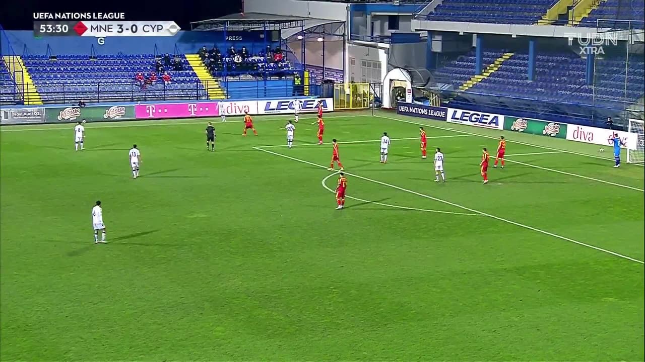 Tiro atajado raso al centro del arco. Chambos Kyriakou (Chipre) Disparo con la derecha desde fuera del área. Asistencia de Thomas Ioannou.