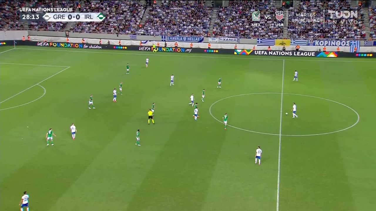 Tiro atajado por abajo a la izquierda. Dimitris Giannoulis (Grecia) zurdazo desde el lado izquierdo dentro del área. Asistencia de Christos Tzolis.