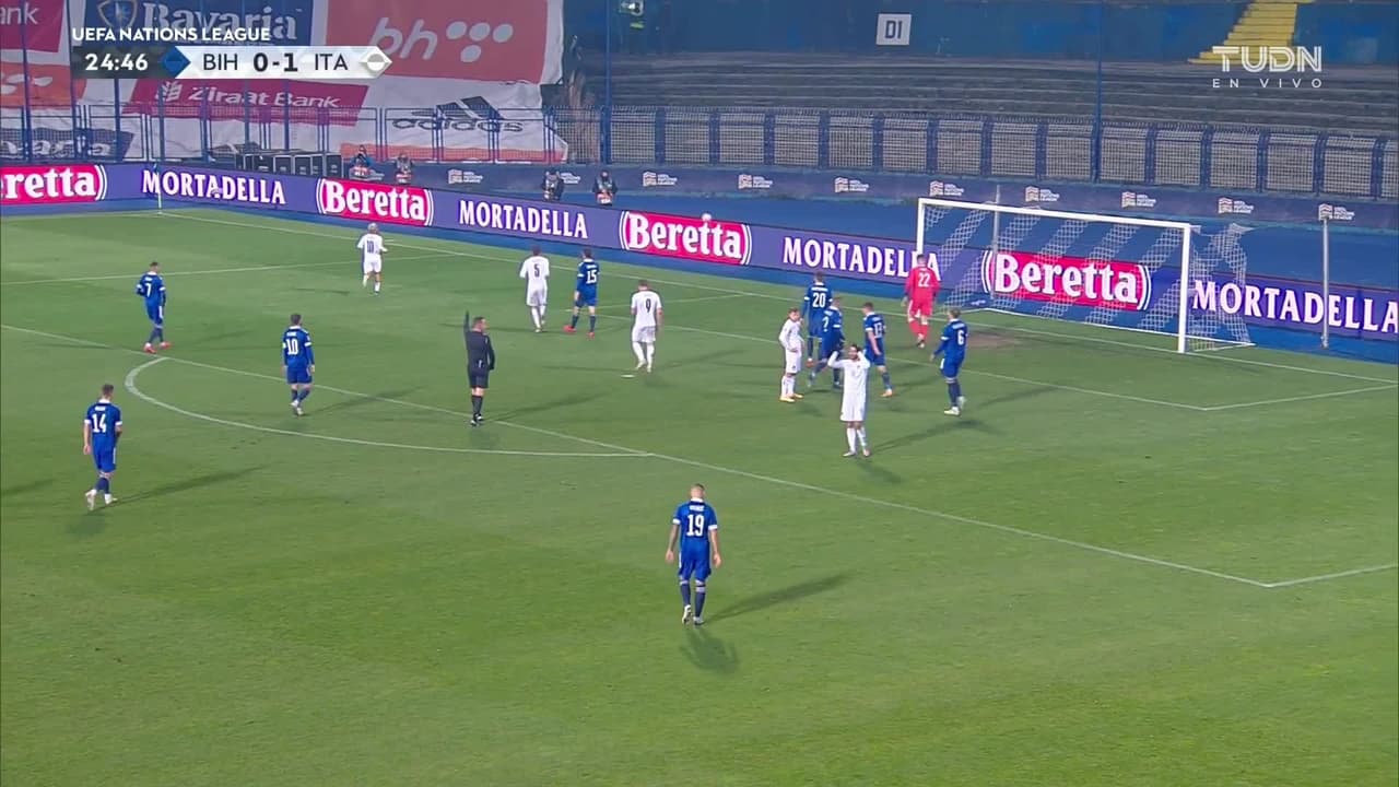 Tiro atajado raso al centro del arco. Domenico Berardi (Italia) zurdazo desde el lado derecho dentro del área. Asistencia de Andrea Belotti.