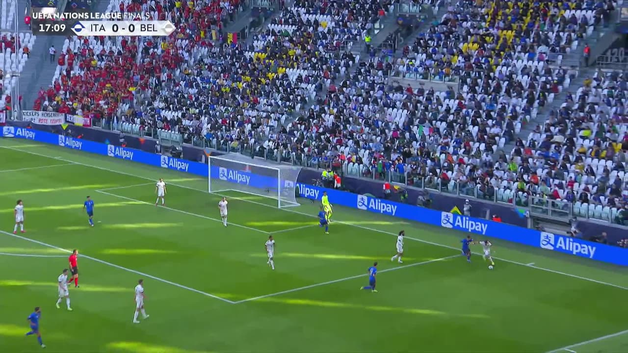 Tiro atajado. Domenico Berardi (Italia) zurdazo desde fuera del área.