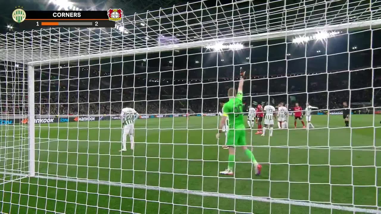 Tiro atajado raso al centro del arco. Edmond Tapsoba (Bayer 04 Leverkusen) disparo de cabeza desde el centro del área. Asistencia de Florian Wirtz con un centro al área.