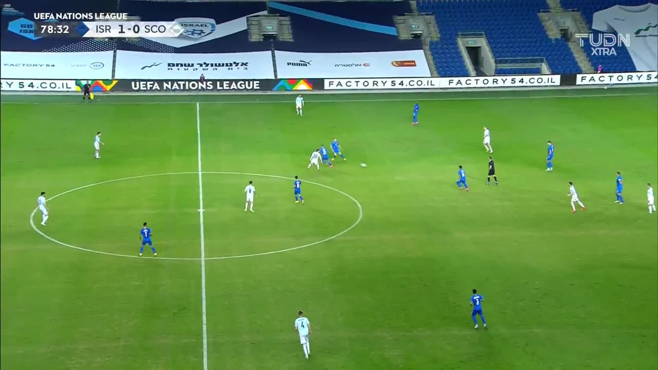 Tiro atajado raso al centro del arco. Eyal Golasa (Israel) zurdazo desde el centro del área. Asistencia de Shon Weissman.