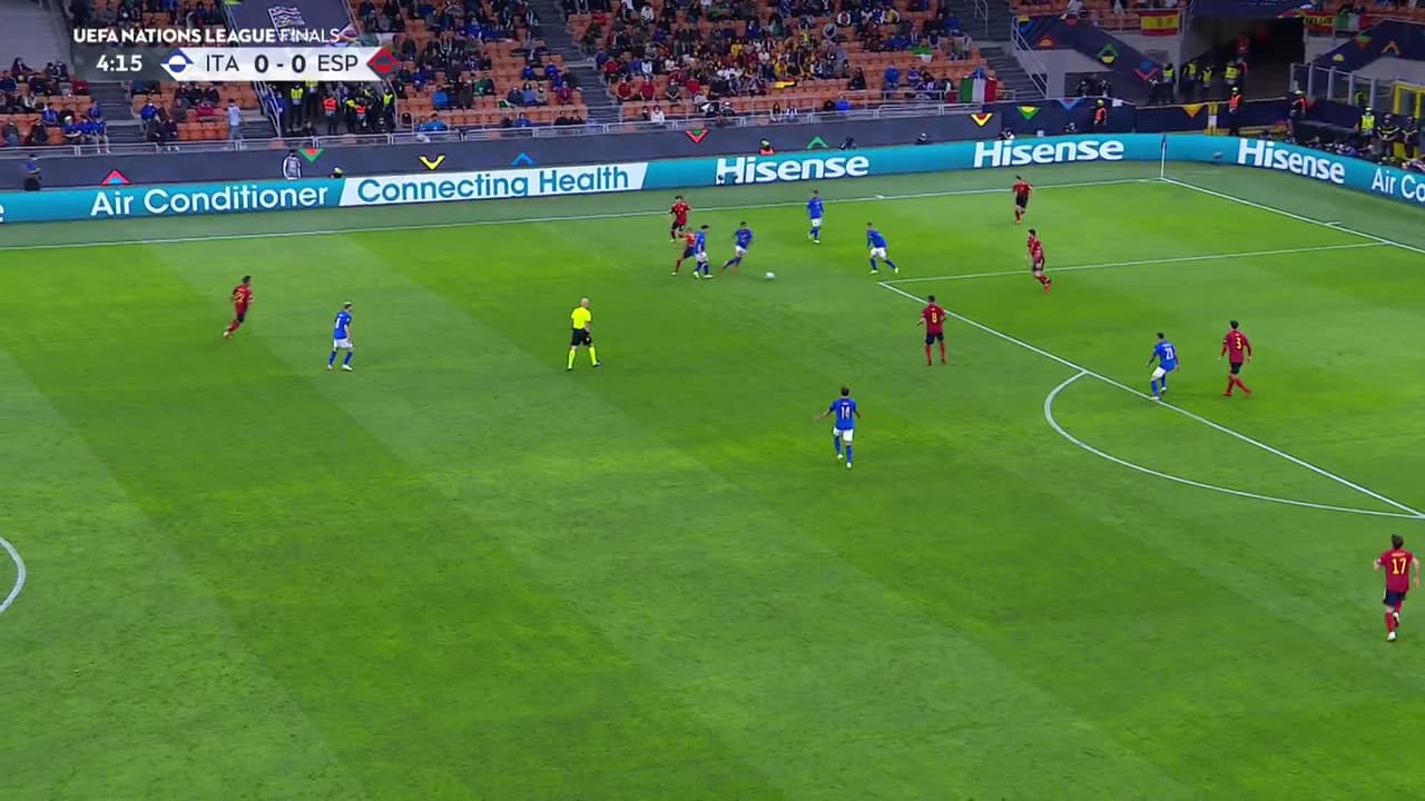 Tiro atajado por abajo a la izquierda. Federico Chiesa (Italia) Disparo con la derecha desde fuera del área. Asistencia de Emerson.