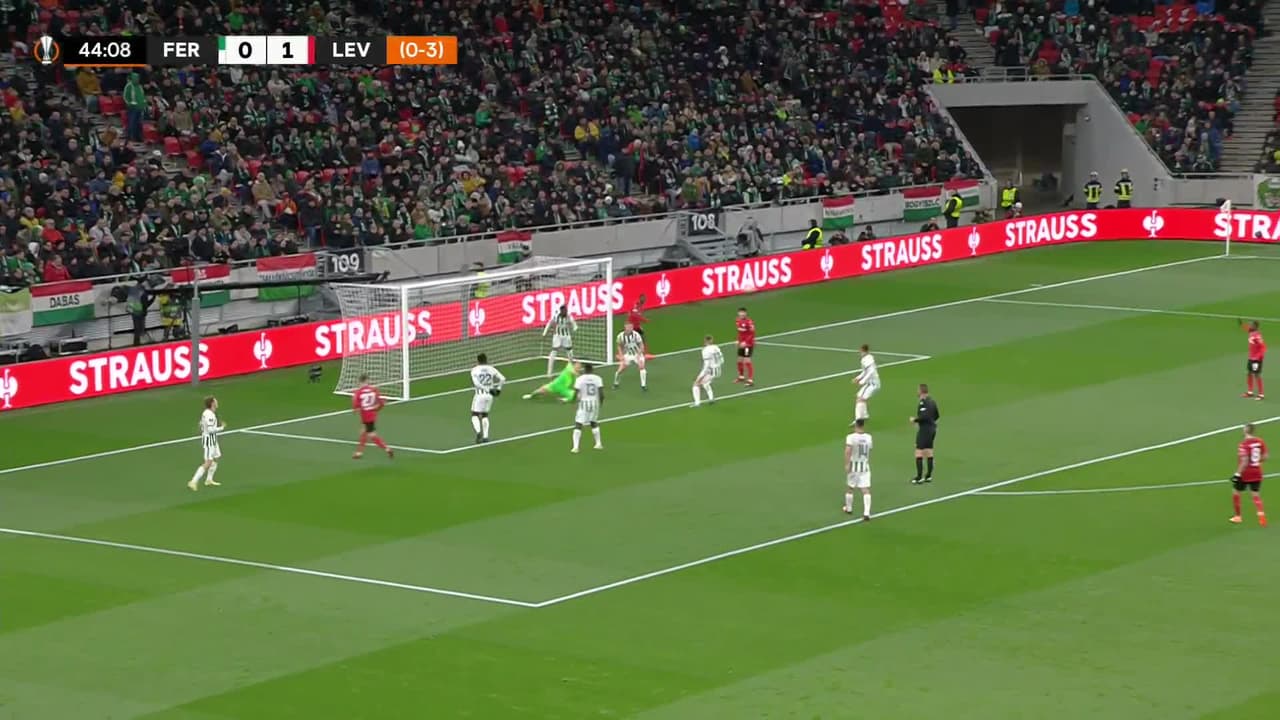 Tiro atajado raso al centro del arco. Florian Wirtz (Bayer 04 Leverkusen) Disparo con la derecha desde el lado izquierdo dentro del área. Asistencia de Jeremie Frimpong.