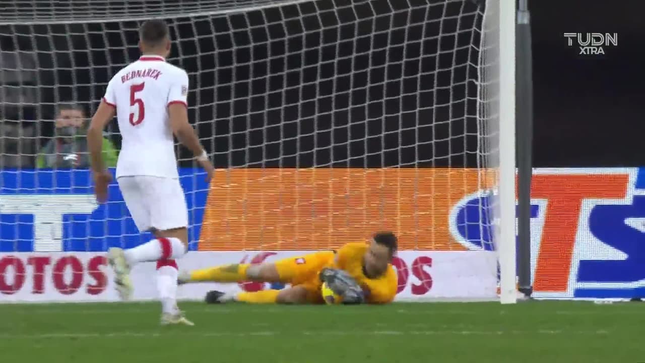 Tiro atajado raso al centro del arco. Frenkie de Jong (Holanda) zurdazo a quemarropa desde el lado izquierdo. Asistencia de Donyell Malen.