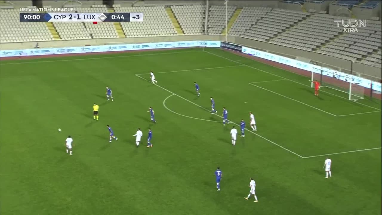 Tiro atajado junto al lado derecho de la portería. Gerson Rodrigues (Luxemburgo) Disparo con la derecha desde el lado izquierdo dentro del área. Asistencia de Mica Pinto.