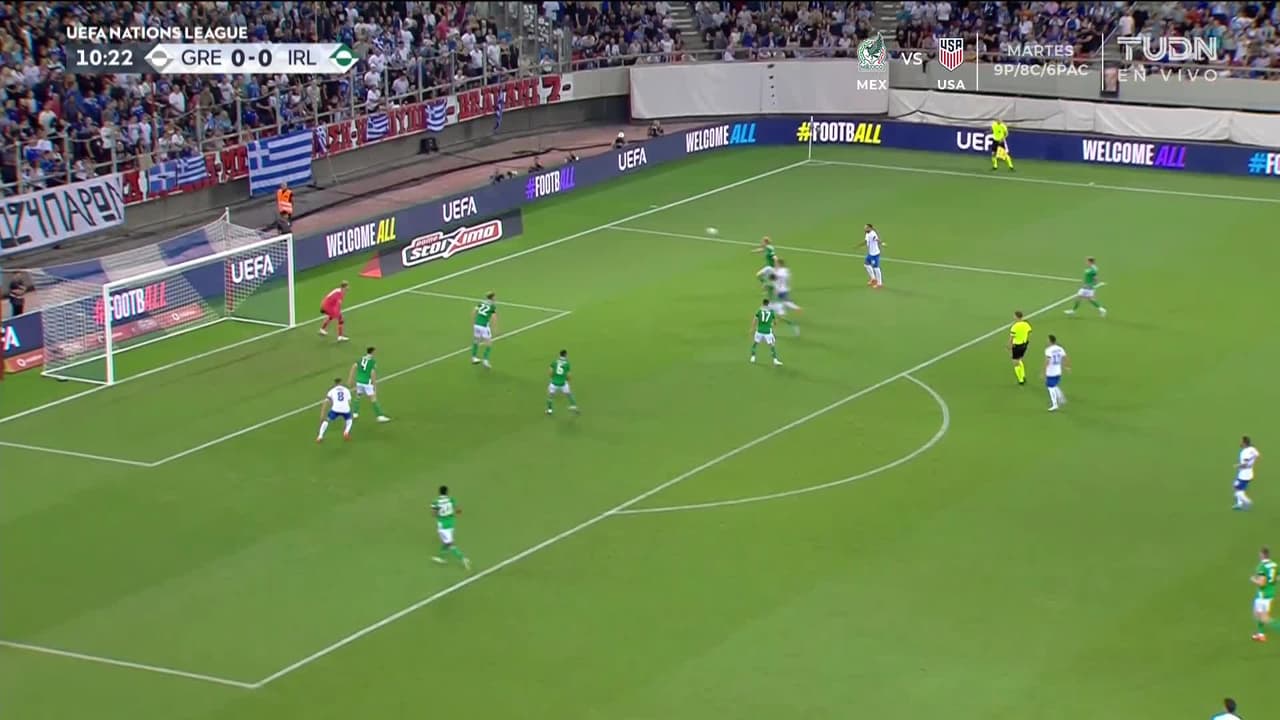 Tiro atajado al ángulo superior derecho. Giorgos Masouras (Grecia) Disparo con la derecha desde el centro del área.