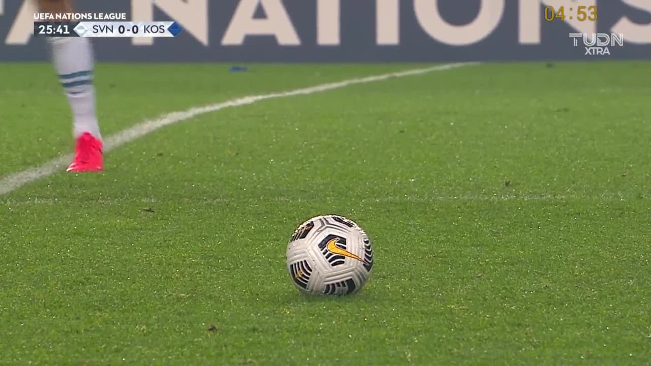 Tiro atajado por abajo a la izquierda. Haris Vuckic (Eslovenia) zurdazo desde el centro del área.