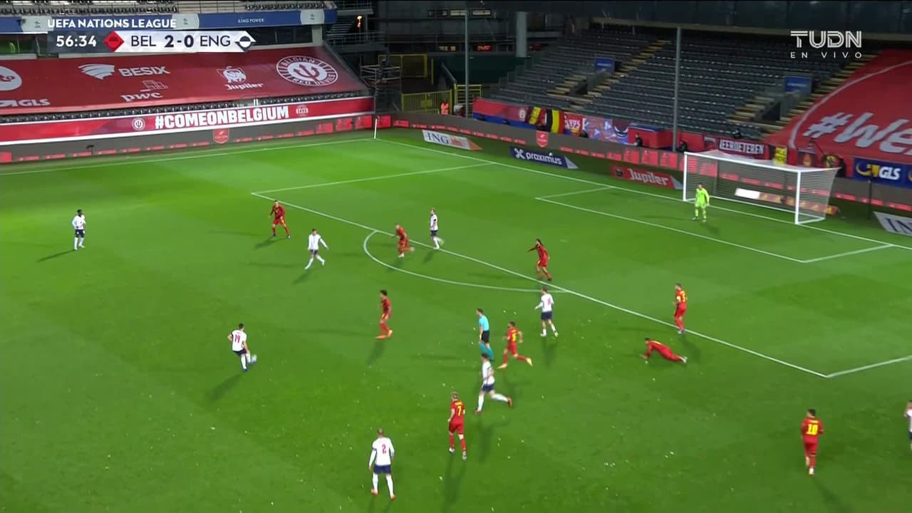 Tiro atajado raso al centro del arco. Harry Kane (Inglaterra) Disparo con la derecha desde el centro del área. Asistencia de Mason Mount.