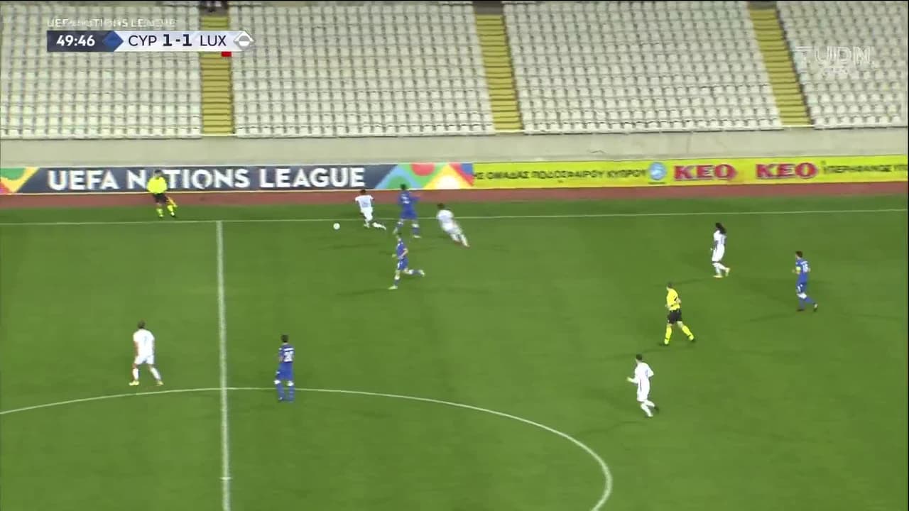 Tiro atajado junto al lado derecho de la portería. Ioannis Pittas (Chipre) Disparo con la derecha desde el lado derecho dentro del área.