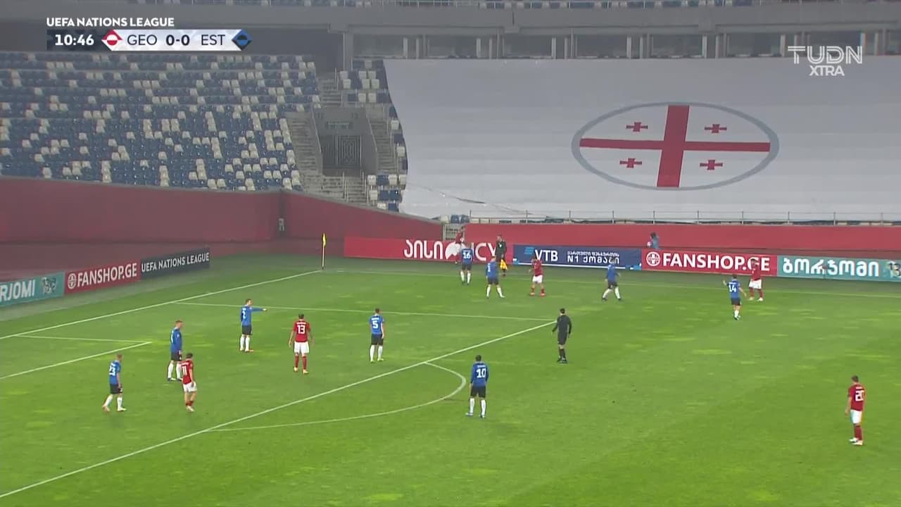 Tiro atajado raso al centro del arco. Jaba Kankava (Georgia) Disparo con la derecha desde fuera del área.
