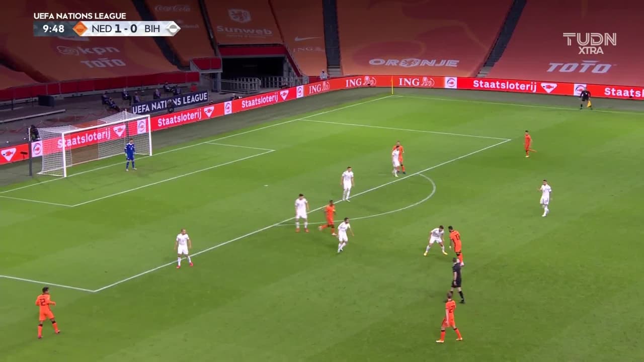Tiro atajado raso al centro del arco. Memphis Depay (Holanda) Disparo con la derecha desde fuera del área. Asistencia de Georginio Wijnaldum.