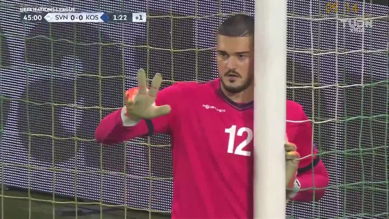 Tiro atajado al ángulo superior derecho. Miha Mevlja (Eslovenia) disparo de cabeza desde el centro del área. Asistencia de Josip Ilicic.