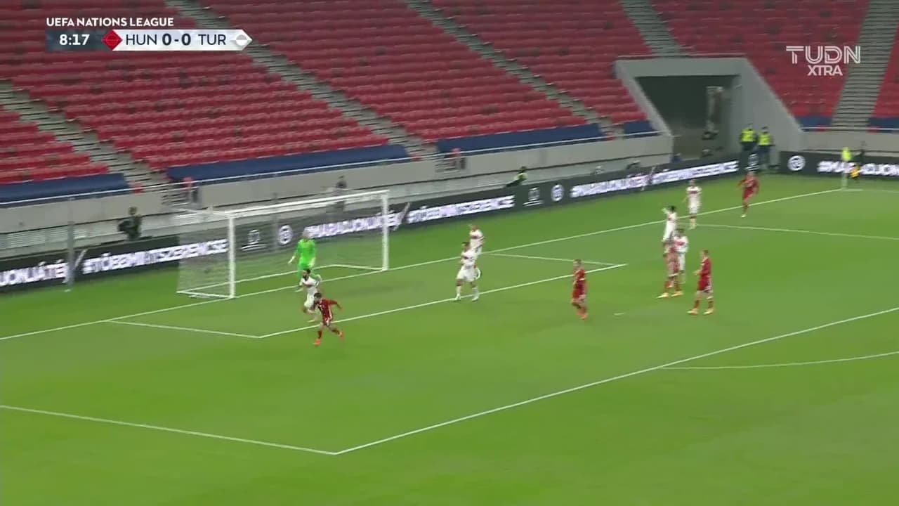 Tiro atajado raso al centro del arco. Nemanja Nikolics (Hungría) Disparo con la derecha desde el lado izquierdo dentro del área. Asistencia de Szilveszter Hangya.