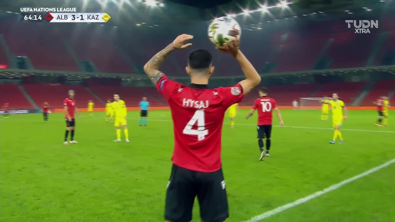 Tiro atajado raso al centro del arco. Rey Manaj (Albania) Disparo con la derecha desde fuera del área. Asistencia de Amir Abrashi.