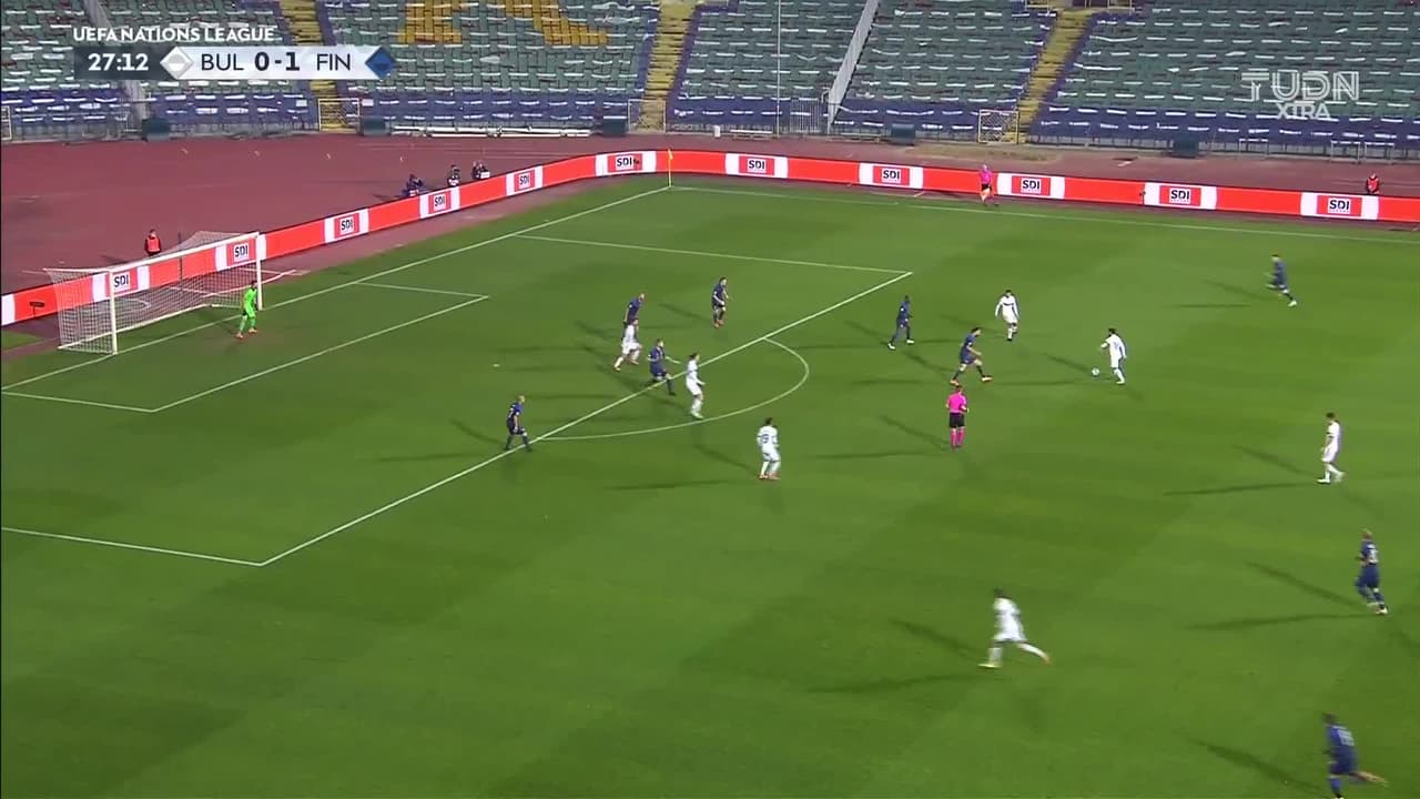 Tiro atajado raso al centro del arco. Spas Delev (Bulgaria) Disparo con la derecha desde fuera del área. Asistencia de Kristiyan Malinov.