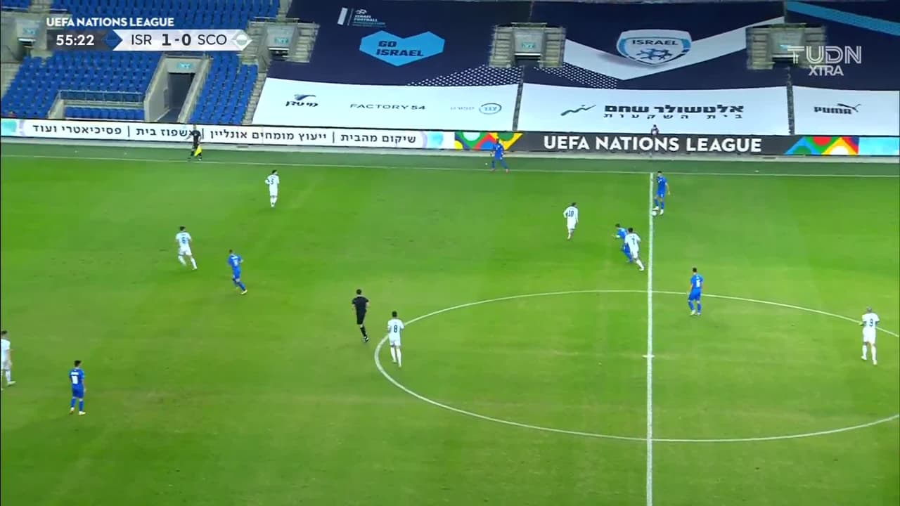 Tiro atajado raso al centro del arco. Stephen O'Donnell (Escocia) Disparo con la derecha desde el lado derecho dentro del área. Asistencia de Ryan Christie pase largo.