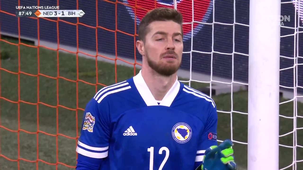 Tiro atajado por abajo a la izquierda. Steven Berghuis (Holanda) zurdazo desde muy lejos y sin ángulo.