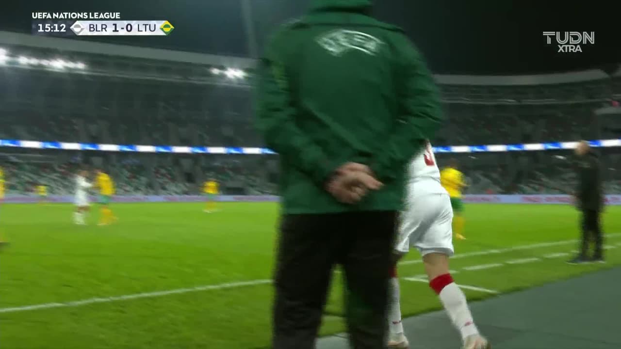Tiro atajado. Vitali Lisakovich (Bielorrusia) zurdazo desde el centro del área.