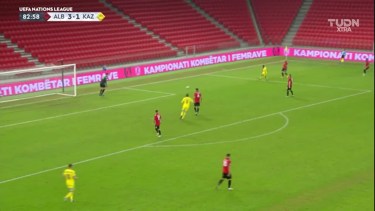 Tiro atajado por abajo a la izquierda. Yan Vorogovskiy (Kazajistán) Disparo con la derecha desde el centro del área. Asistencia de Sergei Khizhnichenko.