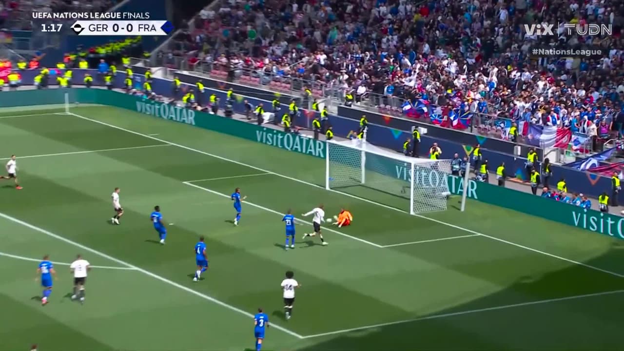 El delantero de 'casa'. del Stuttgart, tuvo la oportunidad abrir el marcador ante Francia.