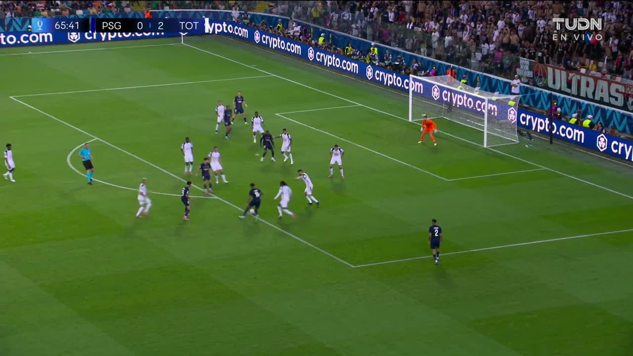 Tiro atajado raso al centro del arco. Désiré Doué (Paris Saint-Germain) zurdazo desde fuera del área. Asistencia de Warren Zaïre-Emery.