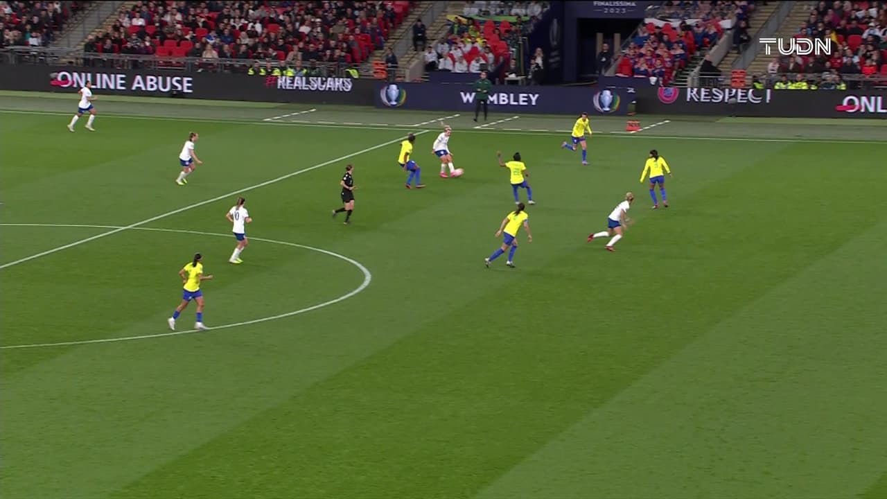 ¡Uff, se queda cerca! Rachel Daly la manda por arriba ante Brasil