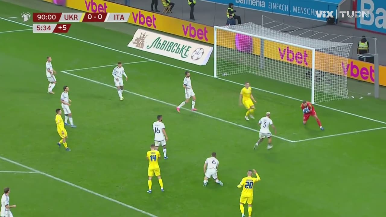 En los últimos segundos del juego, Danylo Sikan disparó con la esperanza de anotar, pero el guardameta italiano contuvo bien.