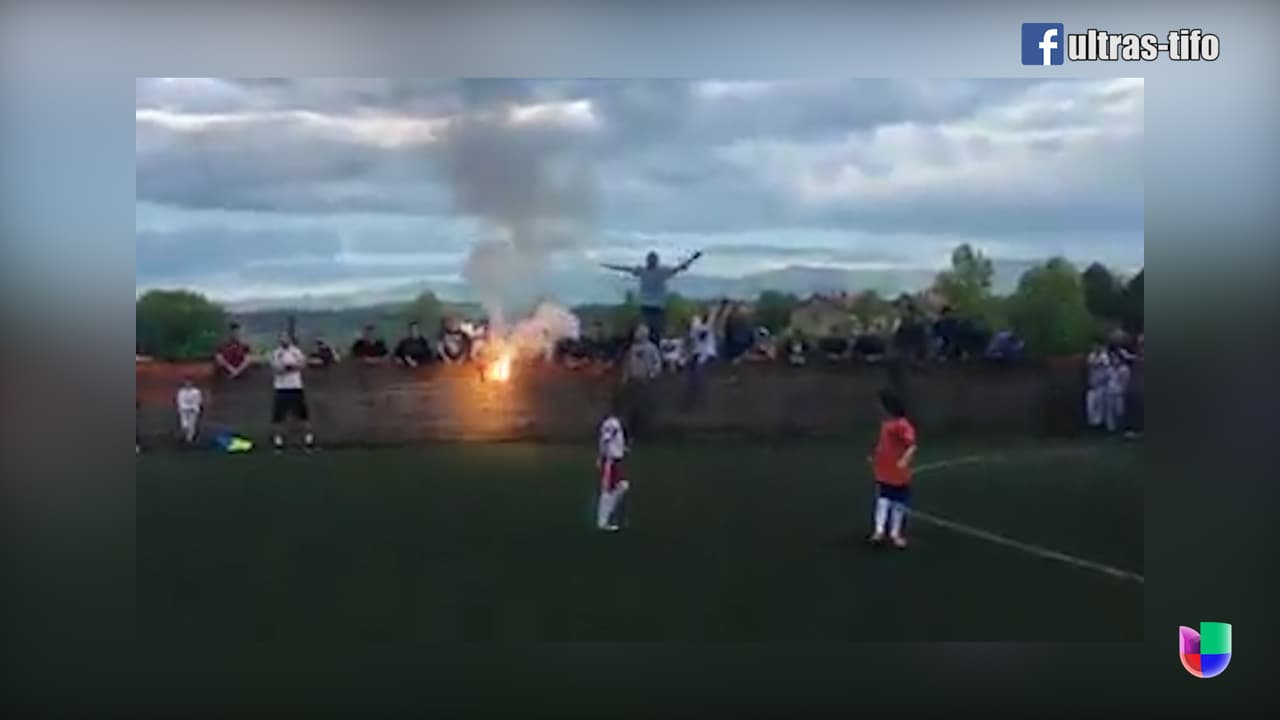 Cantos de aliento y hasta bengalas, es decir la parafernalia normal de los ultras, se vieron sorpresivamente en un partido de niños de Radnicki de Serbia. ¿Qué habrán sentido los pequeños ante la presión?