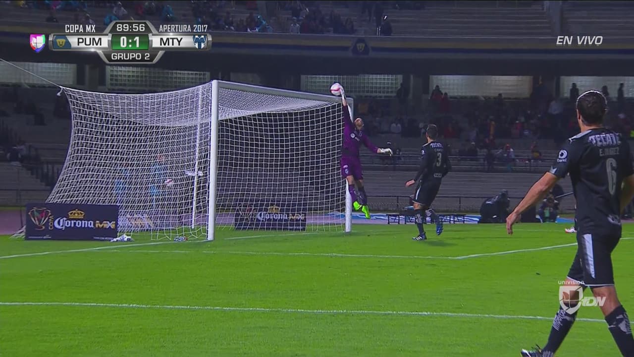 El portero argentino salvó a Monterrey de una pelota peligrosa pero se estrelló con el palo en el momento de caer.