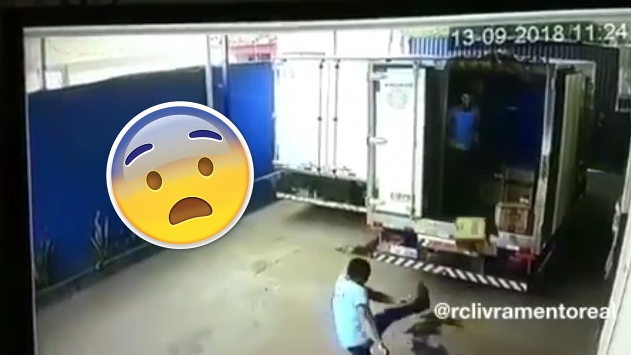 Un crack: a este hombre le lanzan una caja de cartón desde un camión y hace dominadas con ella