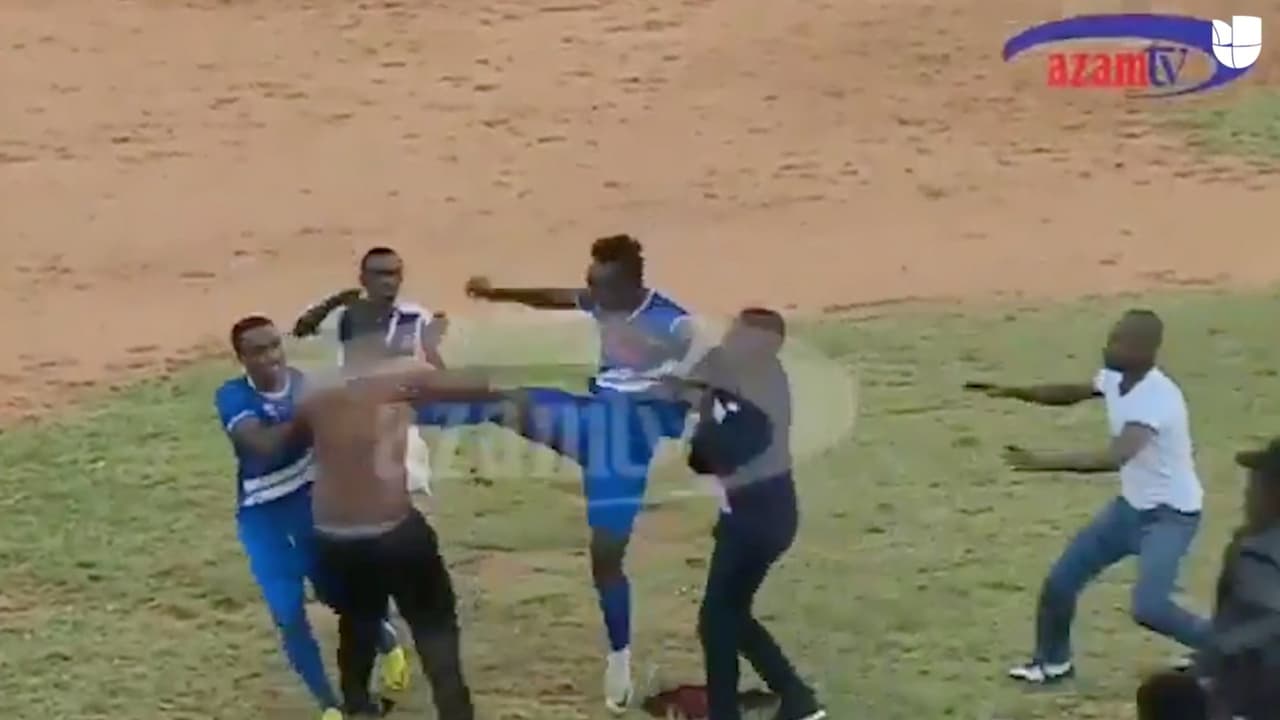 La jugada se dio el fin de semana en el fútbol de Ruanda y el aficionado seguramente nunca olvidará que no debe invadir un campo de juego.