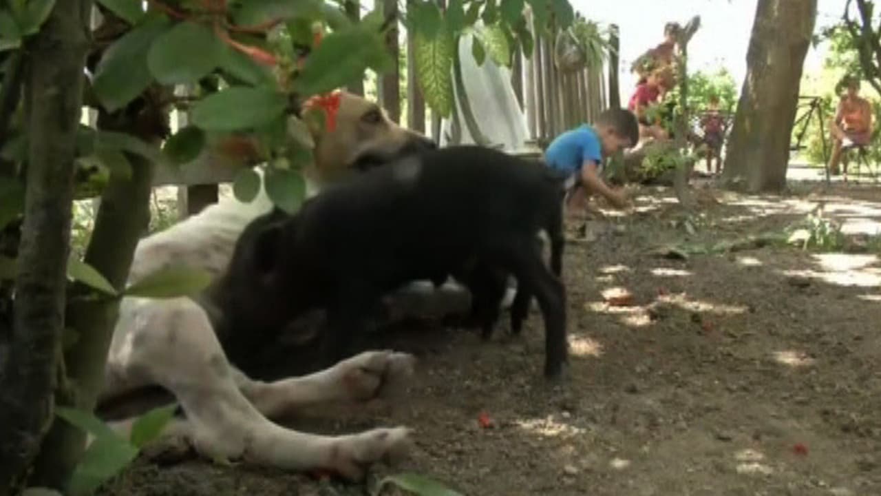 Video Esta perra “adopta” a cinco cerditos tras la muerte de su madre