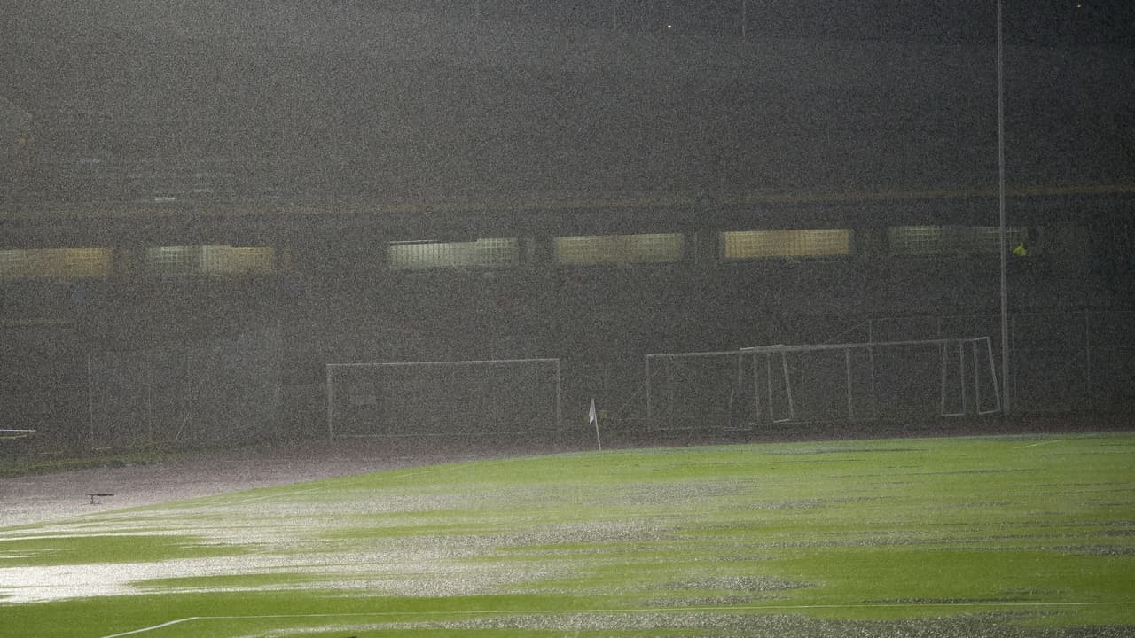 La cancha del estadio Universitario de Ciudad de México, escenario del encuentro por la quinta fecha de la Copa MX entre estas dos escuadras, quedó completamente inundada a causa de la lluvia.