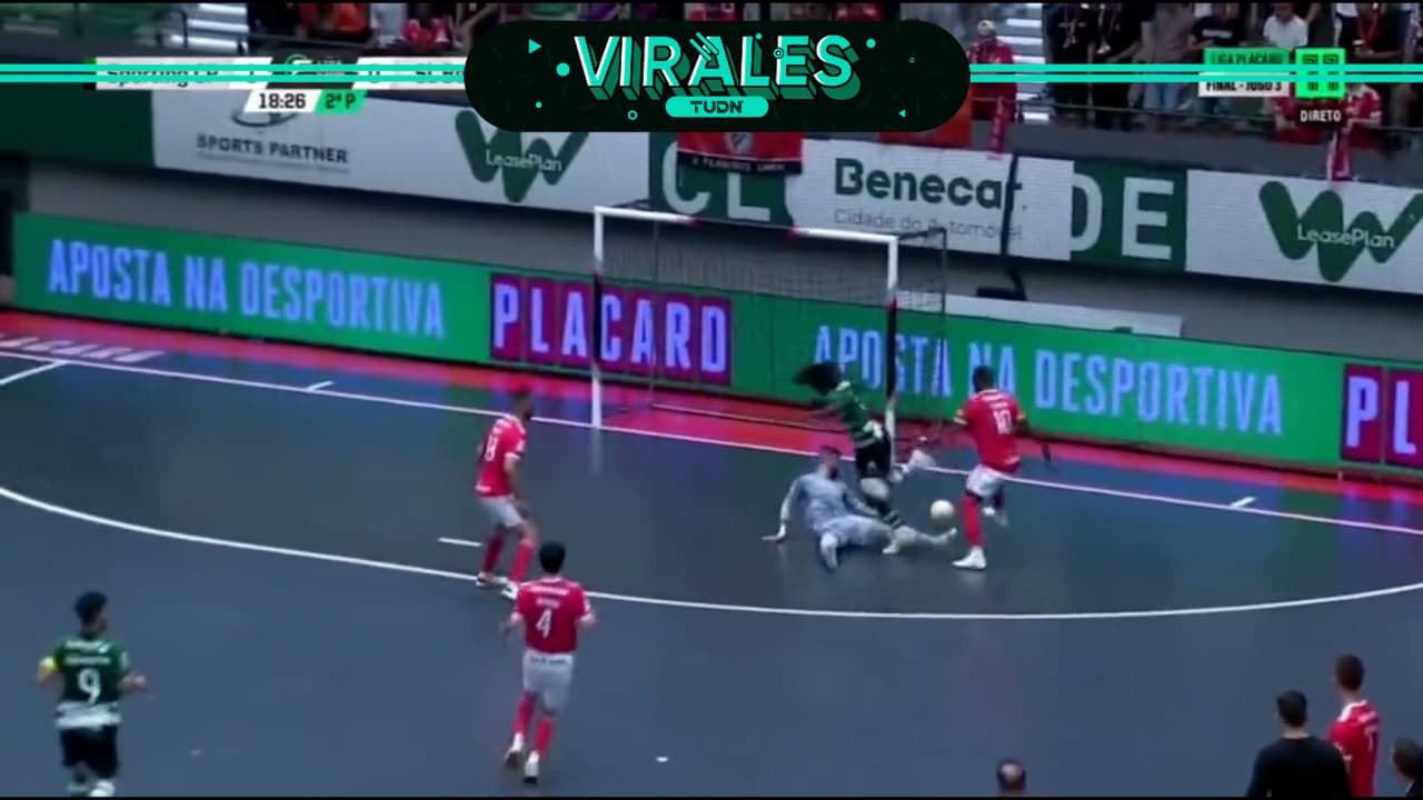 Zicky Té, jugador del Sporting Club, hizo esta pintura en la final de la Liga Placard de futbol sala ante el Benfica en Portugal.