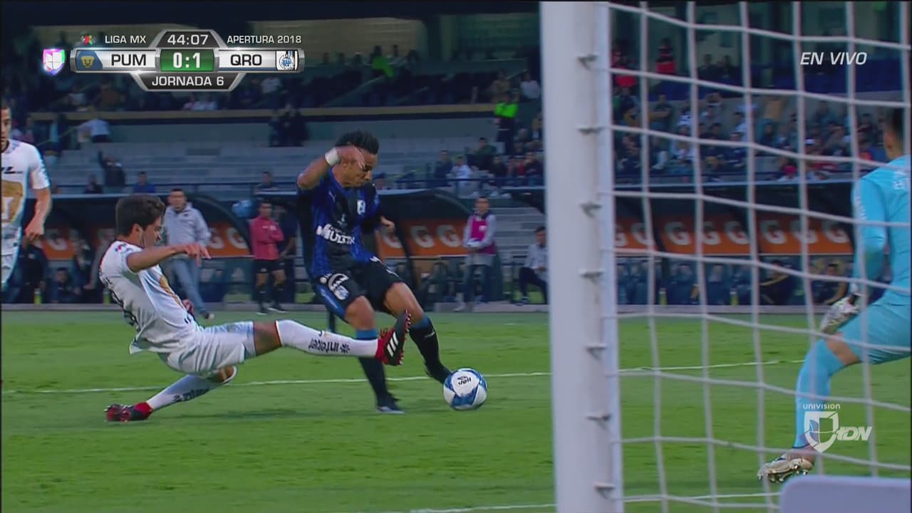 Nuevamente Sanvezzo se complica frente al arco de los universitarios, mientras la defensa local reaccionó y mandó fuera el esférico.