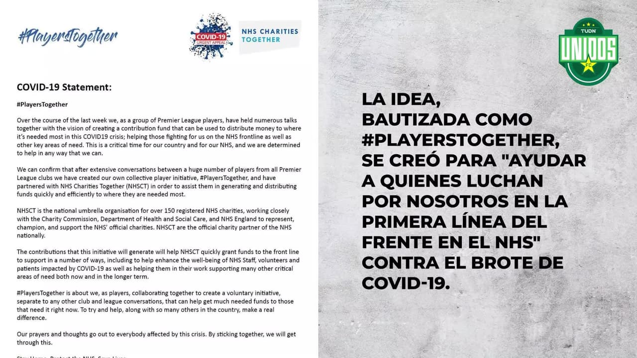 La idea, bautizada como #PlayersTogether, se creó para "ayudar a quienes luchan por nosotros en la primera línea del frente en el NHS" contra el brote de COVID-19.