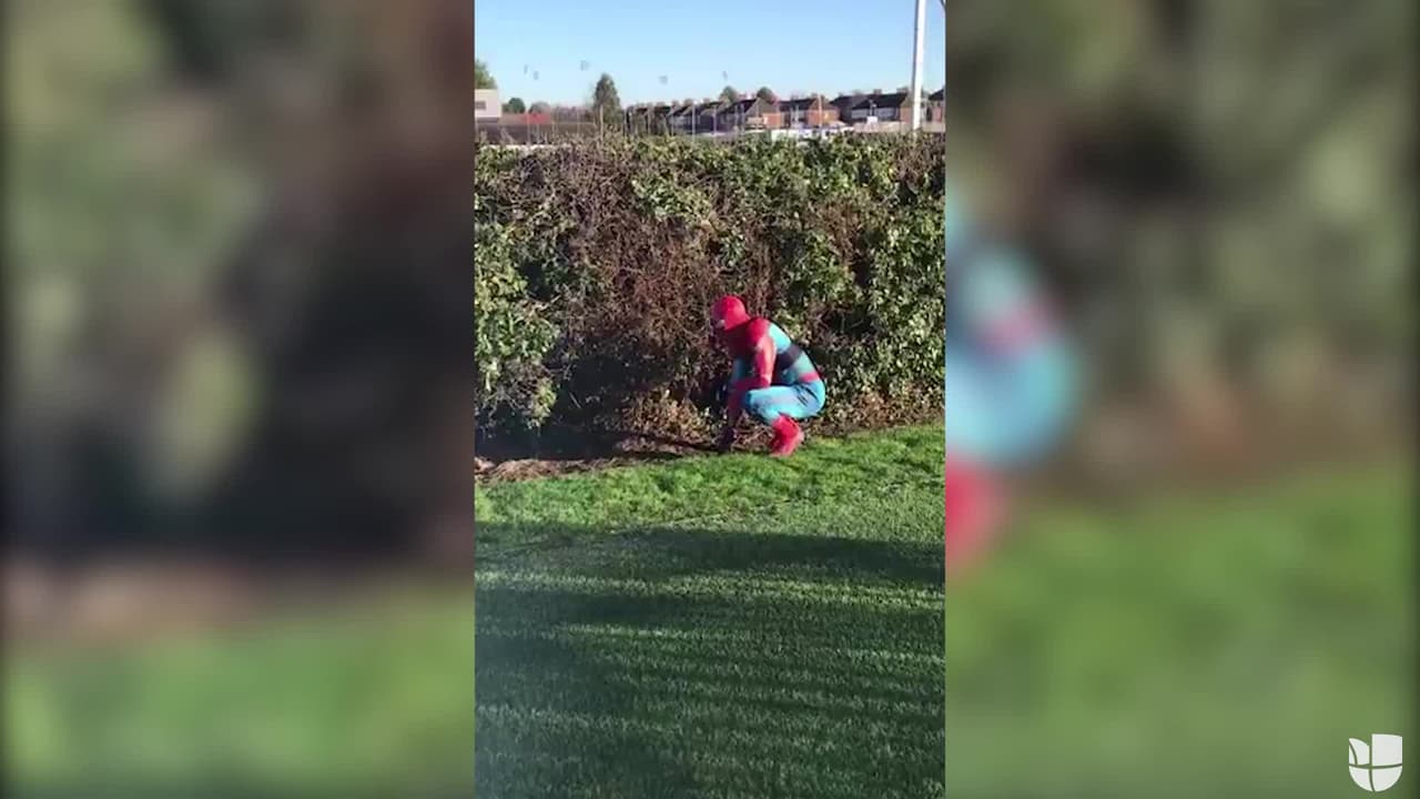 Durante el entrenamiento del los 'Zorros', el delantero del equipo apareció vestido del Hombre Araña e intentó sacarle un susto a los integrantes del club.